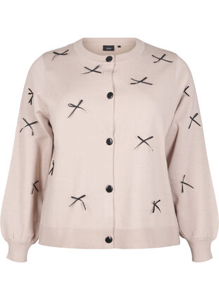 Kofta med eleganta påsydda rosetter och rund halsringning, stickad i en mjuk materialblandning med viskos. Denna kofta har en normal passform med breda ribbade muddar i ärmslut och nederkant.