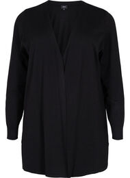 Lång stickad kofta i enkel design med hög ribbad fåll vid ärmarna och slitsar i sidorna. Denna kofta innehåller 50 % LENZING™ ECOVERO™ Viscose-fibrer, som ger naturlig mjukhet och fall.