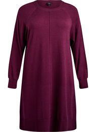 Knälång stickad klänning med dekorativa mittsömmar framtill och på ärmarna. Modellen har rund hals, långa raglanärmar och en avslappnad passform med breda ribbade kanter och små slitsar i sidorna. Den här stickade klänningen innehåller 50% LENZING™ ECOVERO™ viskosfibrer, vilket ger naturlig mjukhet och fall.