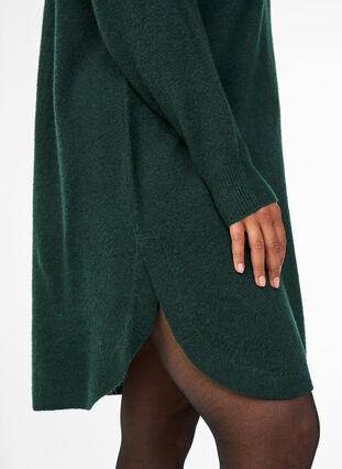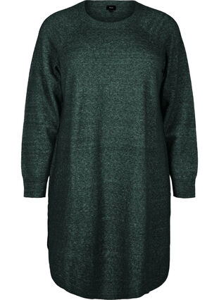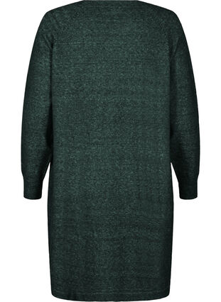 Kort klänning i ett mjukt och lätt stickat material med 64% återvunna fibrer och 6% ull, vilket ger en varm och skön känsla. Klänningen har rund halsringning, långa raglanärmar och ribbade muddar i ärmslut, hals och nederkant, samt lös passform med rundad nederkant.