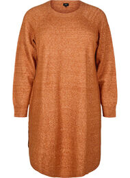 Kort klänning i ett mjukt och lätt stickat material med 64% återvunna fibrer och 6% ull, vilket ger en varm och skön känsla. Klänningen har rund halsringning, långa raglanärmar och ribbade muddar i ärmslut, hals och nederkant, samt lös passform med rundad nederkant.