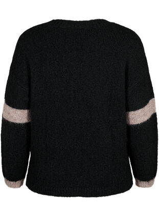 Skön stickad tröja tillverkad i en varm ullblandning. Den stickade tröjan är designad med randiga detaljer, rund halsringning och normal passform.