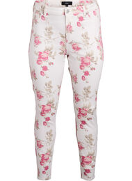 Amy jeans med ett feminint blommönster, tillverkad av mjukt och stretchigt bomullstyg. Dessa jeans har supersmal passform med hög midja och klassiska fickor och bälteshällor.