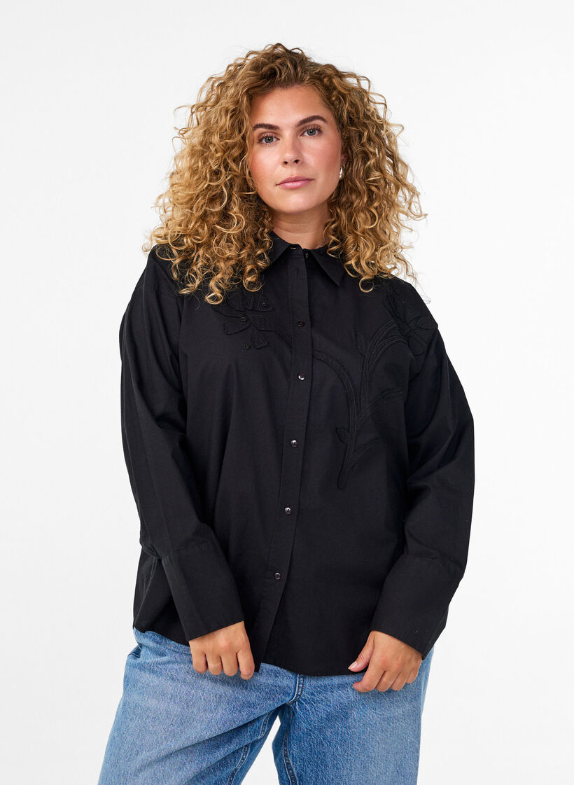 Bomullsskjorta med ton-i-ton blomsterbroderi