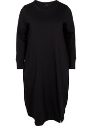 Bekväm klänning med slits och fickor i sidan. Klänningen är tillverkad i en mjuk bomullsblandning med en lös passform och är färdig med ribbkant vid ärmslut och fåll.