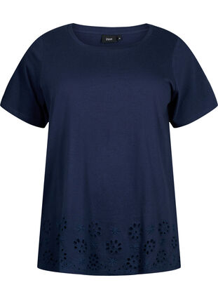 Enfärgad t-shirt med rund hals, som är tillverkad av 100% bomull. T-shirten har en fin detalj på framsidan med broderi anglaise.