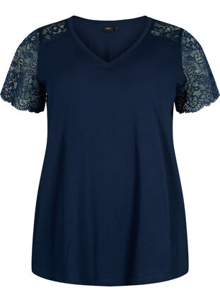 Superfin t-shirt i 100 % mjuk ekologisk bomull med normal passform. T-shirten har v-ringning och ärmar med snygg spets.