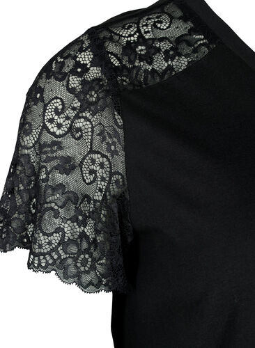 Superfin t-shirt i 100 % mjuk ekologisk bomull med normal passform. T-shirten har v-ringning och ärmar med snygg spets.