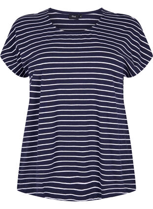 T-shirt i klassisk design med ränder, tillverkad i en bekväm och stretchig bomullskvalitet. Den har korta ärmar, rund hals och en löst sittande passform.