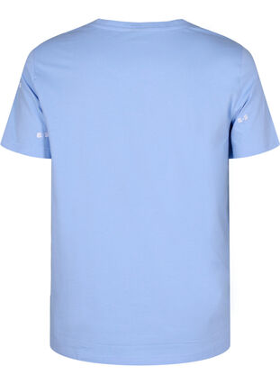Kortärmad t-shirt i 100 % ekologisk bomull med dekorativa broderade motiv. T-shirten har rund halsringning och normal passform.