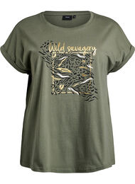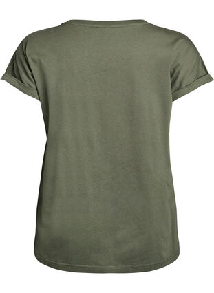 T-shirt i 100% bomull med en lös och bekväm passform. T-shirten har rund halsringning, kortärmad med uppvikta ärmar och ett dekorativt tryck på bröstet.