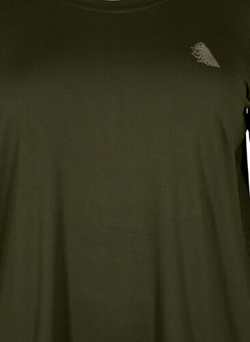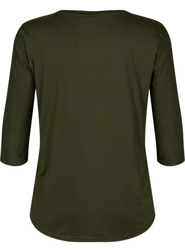 Enfärgad träningströja med 3/4-ärmar, rund halsringning och en liten logga på bröstet.