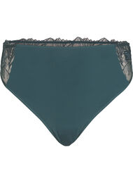 Stringtrosor i mjuk mikrofiber med vacker spets i sidorna och bak. Trosorna har normal midja, bomullsbeklädd gren och minimal täckning bak.