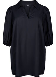 Enfärgad tunika med bekväm passform, tillverkad i mjuk viskos. Tunikan är designad med V-ringning och krage, samt trekvartsärmar med elastiska muddar.