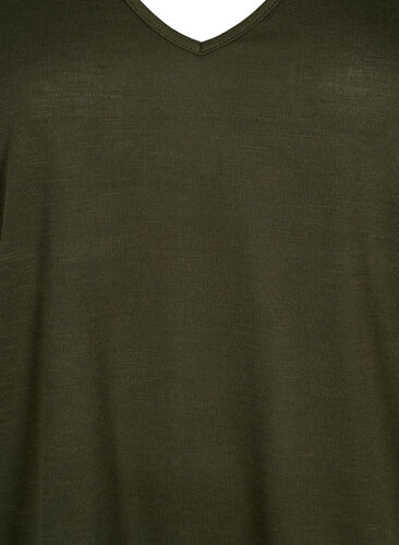 Feminin blus med v-hals och korta ärmar med superfina spetsdetaljer längs axlarna och ärmarna.