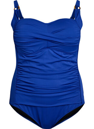 Baddräkt med vacker drapering och vadderade kupor som ger form och stöd. Baddräkten har breda justerbara band och meshfoder framtill för extra stöd och en bekväm passform.