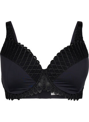 Bh med dekorativ spetsdetalj med vackert geometriskt mönster. För att ge optimal komfort och bra stöd för bysten är bh:n utformad med breda, justerbara band, vadderade kupor och höga sidosömmar.