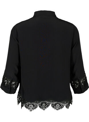 Viskos skjorta med 3/4 ärm och broderade detaljer