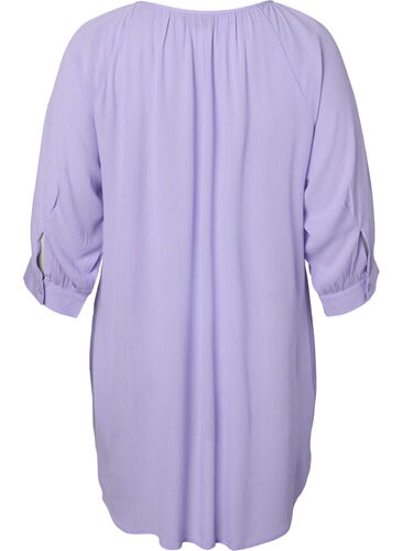 Enfärgad tunika med 3/4-ärmar som är tillverkad i en mjuk kvalitet av 100% LENZING™ ECOVERO™-viskos. Tunikan har en rund halsringning med knäppning och en löst sittande A-linjeformad modell med ett fint fall.