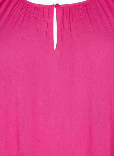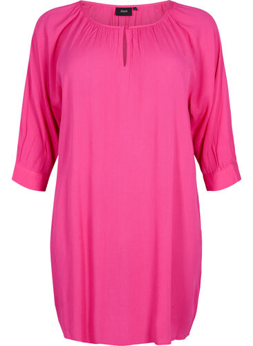Enfärgad tunika med 3/4-ärmar som är tillverkad i en mjuk kvalitet av 100% LENZING™ ECOVERO™-viskos. Tunikan har en rund halsringning med knäppning och en löst sittande A-linjeformad modell med ett fint fall.