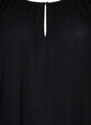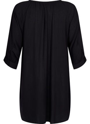Enfärgad tunika med 3/4-ärmar som är tillverkad i en mjuk kvalitet av 100% LENZING™ ECOVERO™-viskos. Tunikan har en rund halsringning med knäppning och en löst sittande A-linjeformad modell med ett fint fall.