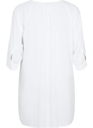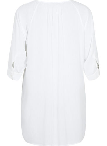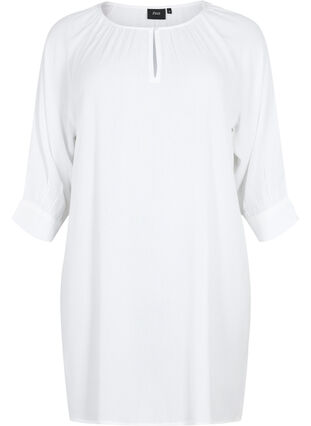 Enfärgad tunika med 3/4-ärmar som är tillverkad i en mjuk kvalitet av 100% LENZING™ ECOVERO™-viskos. Tunikan har en rund halsringning med knäppning och en löst sittande A-linjeformad modell med ett fint fall.