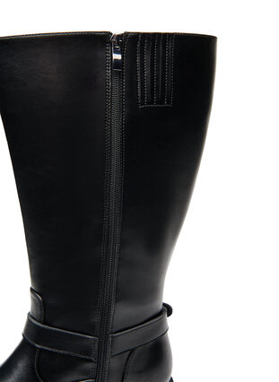 Wide fit - Hög läderstövel med dekorativa spännen