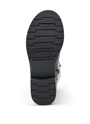 Snygg hög stövel i 100% läder med extra vidd i skaftet. Stilen har en distinkt ringdetalj med rem och spännen, vilket betonar den bikerinspirerade looken. Den är enkel att ta på och av tack vare en dragkedja på insidan och har resår i skaftet för bättre passform. Inläggssulan ger plats för egna inlägg, och yttersulan har ett halkskyddsmönster för bra grepp. En stövel som kombinerar stil och funktion, perfekt till både klänningar och jeans.